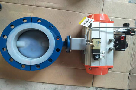 氣動襯氟蝶閥是用隨閥桿一起轉(zhuǎn)動的蝶板作啟閉件,用以實(shí)現(xiàn)閥門的開啟、關(guān)閉與調(diào)節(jié)。另外,蝶閥還有體積小、重量輕、結(jié)構(gòu)簡單等優(yōu)點(diǎn),與同參數(shù)閘閥比較,平均減輕重量達(dá)30~50%,蝶板旋轉(zhuǎn)90°即可實(shí)現(xiàn)啟、閉過程,又由于轉(zhuǎn)軸兩側(cè)蝶板受介質(zhì)作用力近似相等,轉(zhuǎn)矩相反,因此啟閉力矩較小。