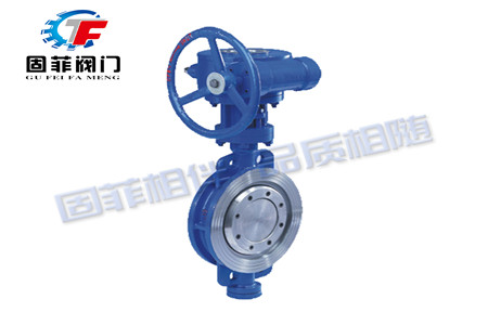 GFD373H對夾式三偏心蝶閥的蝶板安裝于管道的直徑方向。在蝶閥閥體圓柱形通道內,圓盤形蝶板繞著軸線旋轉,旋轉角度為0°-90°之間,旋轉到90°時,閥門則呈全開狀態。